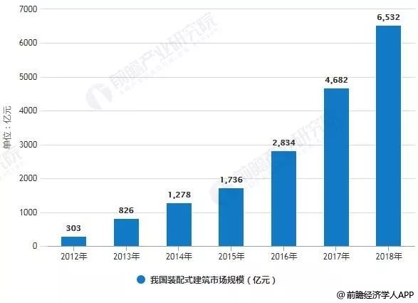 From the perspective of the layout of industry reform and development, China’s construction industry has advanced a lot toward the goal of industrial modernization, and the prefabricated buildings have shown a booming development. According to the statistics of China’s prefabricated construction industry market prospects and investment planning in-depth analysis report released by Prospective Industry Research Institute, the scale of China’s fabricated construction market in 2012 was only 30.3 billion yuan, showing a year-on-year growth. By 2016, the scale of China’s fabricated construction market reached 283.4 billion yuan, and it has been growing at a high speed. As of 2017, China’s fabricated construction market grew to a size of 468.2 billion yuan. It is estimated that the scale of China’s fabricated construction market will exceed 650 billion yuan in 2018, reaching 653.2 billion yuan.
